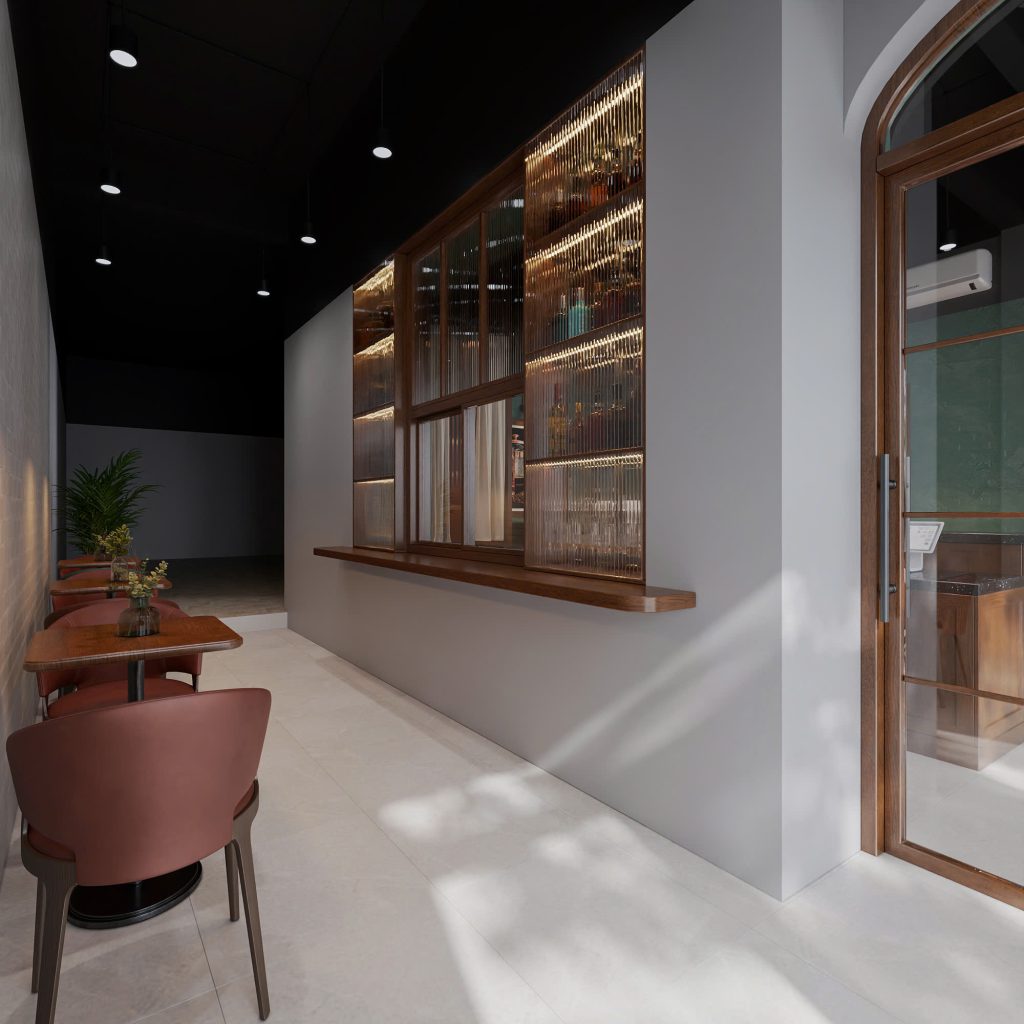Dự án được cải tạo từ hiện trạng cũ thành mô hình Bar Coffee kết hợp. Bố cục được tính toán kỹ lưỡng để tối ưu hóa diện tích mặt sàn dài và hẹp: